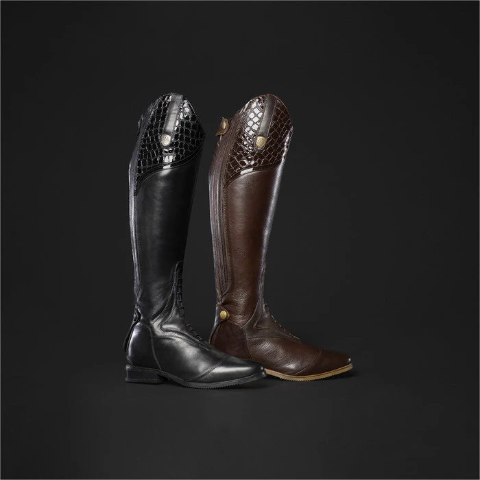 A glamorised take on the Sovereign High Rider boot from Mountain Horse. The Sovereign Lux High Rider made from high quality, supple, full grain leather featuring glossy croc print leather is a must have! Designed with a ShockX Advanced insole system providing all-day comfort it is ergonomically shaped to fit the sole of your foot. With built in steel shanks these boots will support you not only when riding but also on the ground.