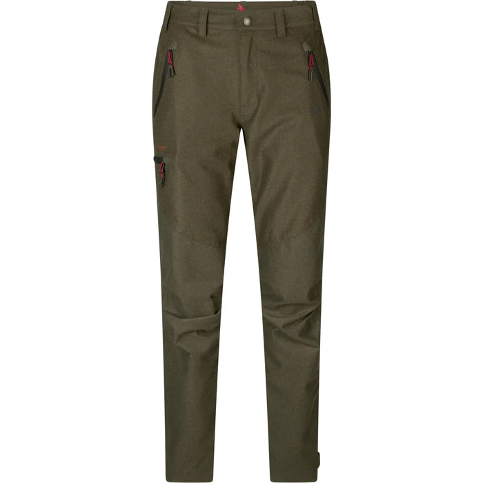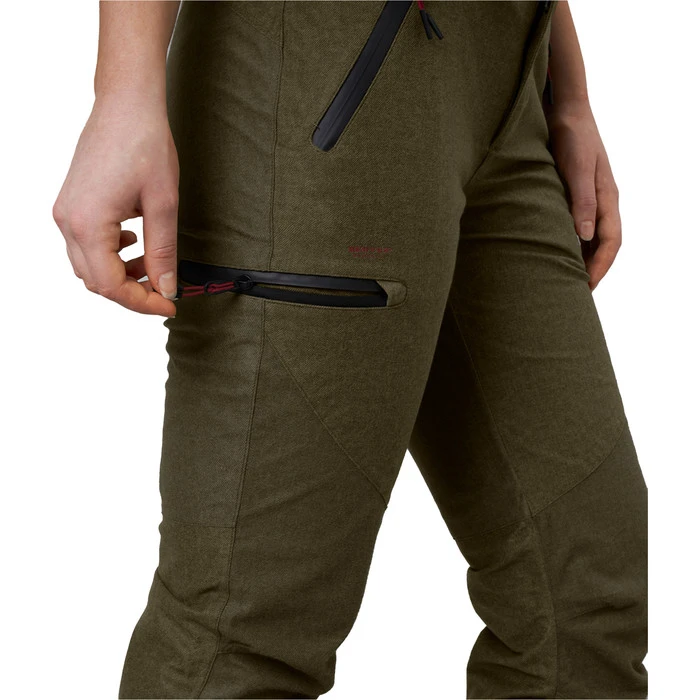 Superb waterproof and windproof trousers for women in a fine twill fabric with comfortable stretch. They have an elegant feminine fit. There are two front and one thigh pocket, all with waterproof zips. There are velcro adjusters at bottom hemline. The trousers are fully waterproof and windproof due to the SEETEX® membrane.