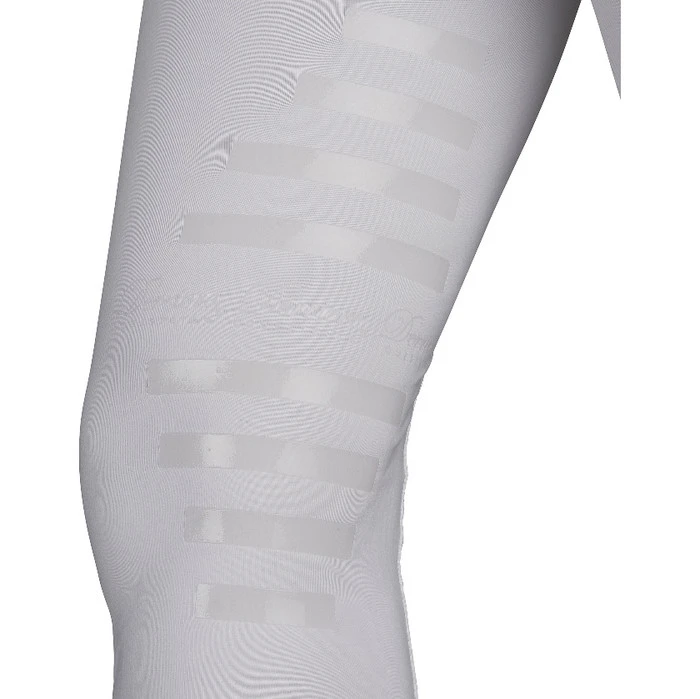 Innovative, flexible sporting fabric teamed with durable silicone knee strips provides riders with a comfortable yet subtle grip, aiding performance by supporting the inner knee and upper calf, allowing the body to move with the motion of the horse. The transparent silicone grip technology used has been tested and certified and in no way restricts movement.